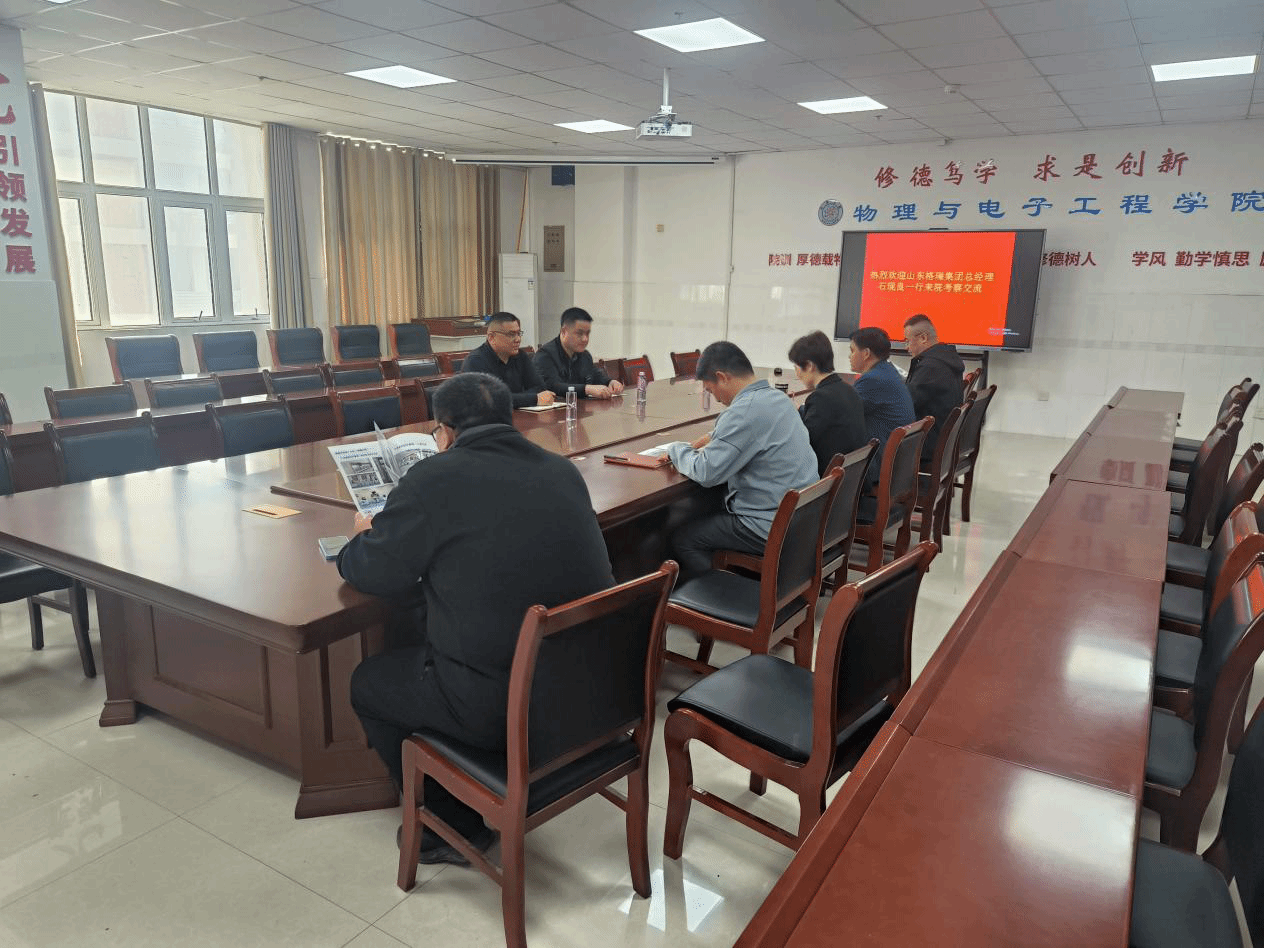 3月29日下午,山东格瑞集团总经理石现良一行来菏泽学院物理与电子工程学院考察交流。学院党委书记徐鹤、副书记祝清森、副院长张运海及相关教师参加座谈交流。