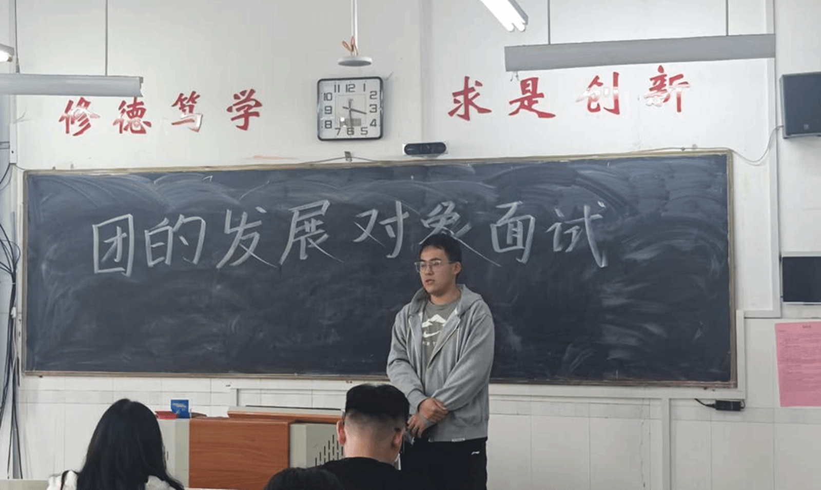 本次团员发展对象答辩工作分为自我陈述和提问答辩两个环节。在答辩过程中,同学们表达了自己迫切想要加入团组织的愿望,并阐述了自身的综合素质与实践能力。各位老师围绕思想政治素养、团的知识储备、语言表达能力、现场应变能力等维度,严格遵循“全方位考察、全过程把关”原则,依据每位入团积极分子的展示内容进行针对性的提问,对9名入团积极分子进行了综合评估。