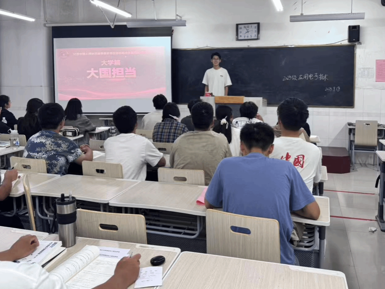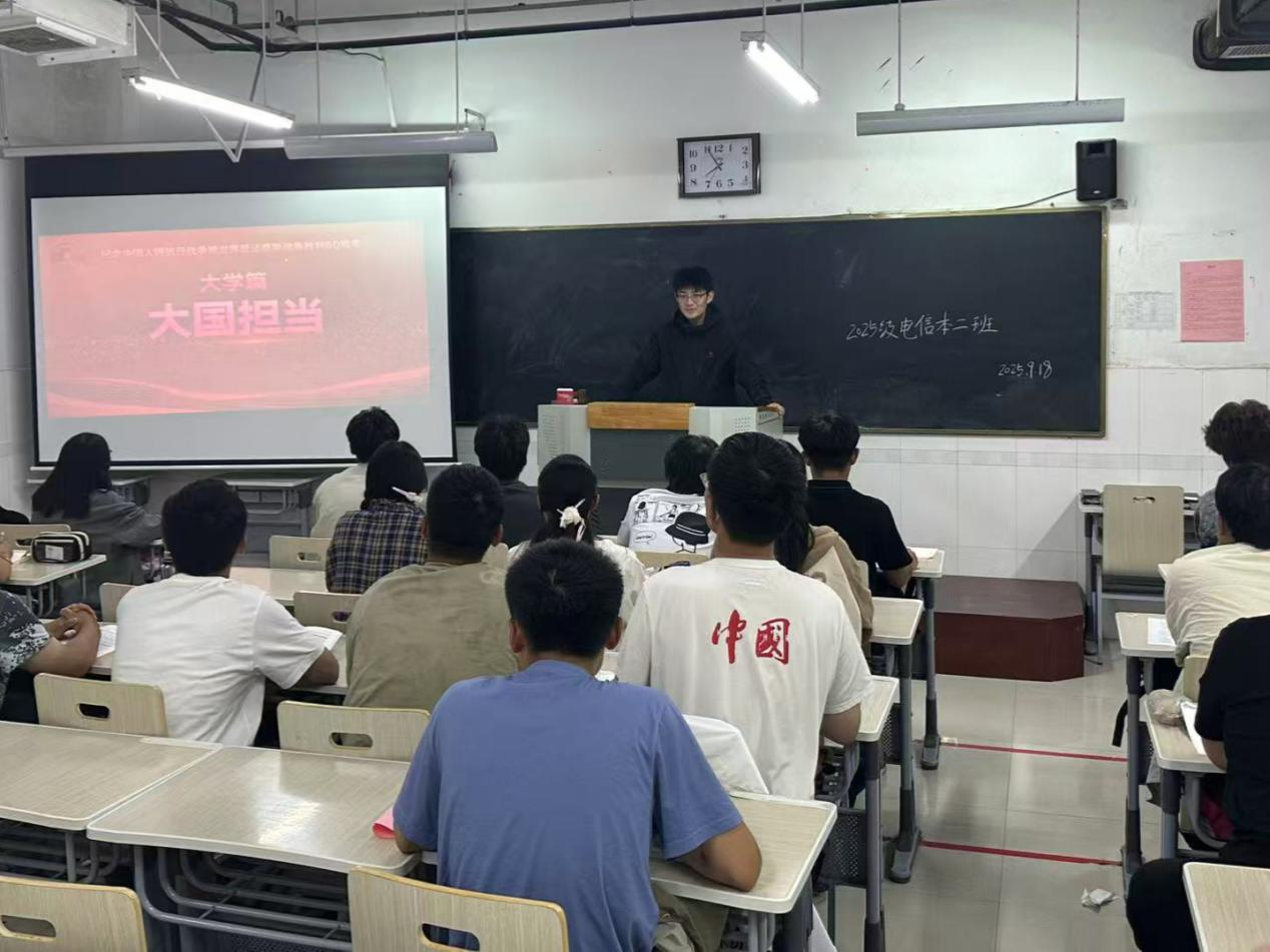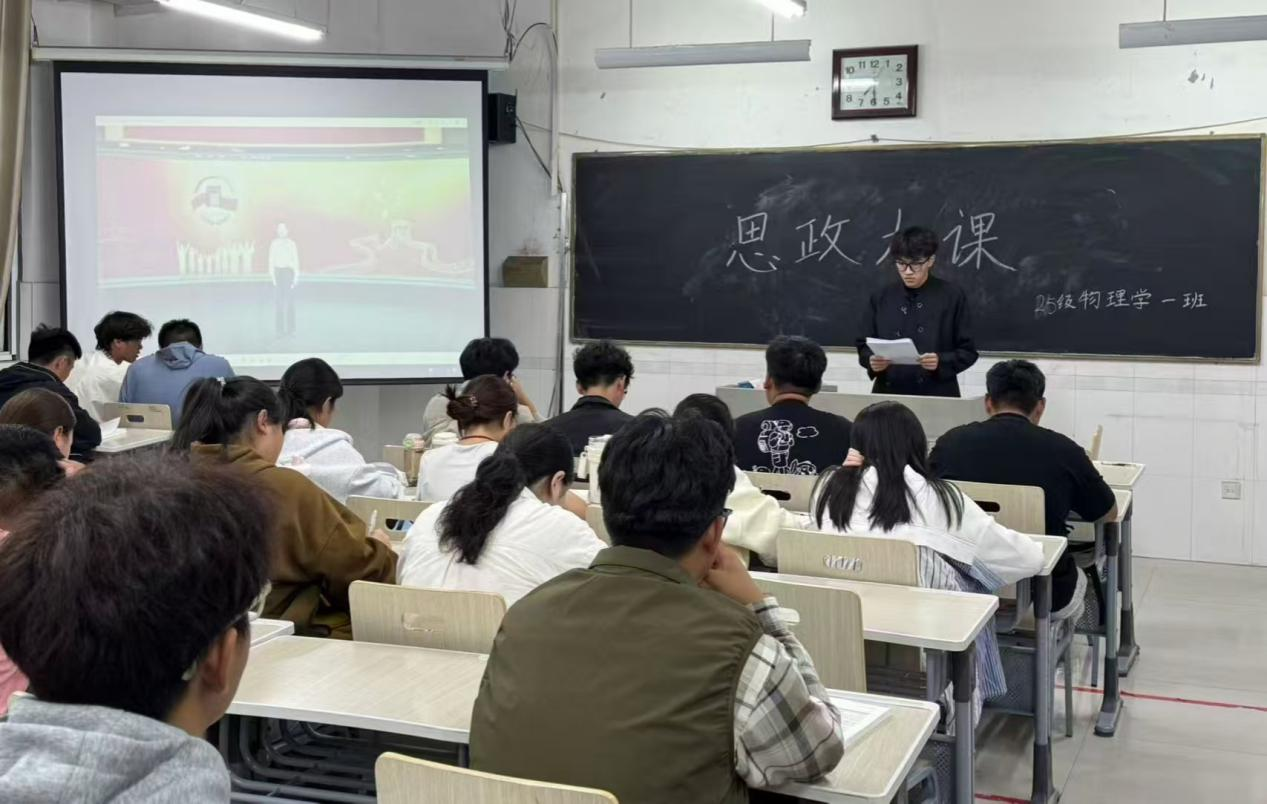 为追忆峥嵘岁月,赓续红色血脉,砥砺奋进之志,教育部推出“弘扬伟大抗战精神做光荣自豪中国人——纪念中国人民抗日战争暨世界反法西斯战争胜利80周年”思政大课活动,9月18日,物理与电子工程学院组织全体学生在综合实验楼W楼集中观看本次课程。