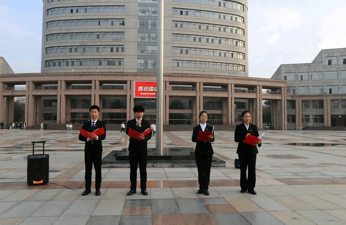 为迎接和庆祝中华人民共和国成立76周年,厚植爱国主义情怀,引导学生勇担时代使命,9月29日清晨,物理与电子工程学院在综合办公楼前广场参加“青春奋进,强国有我”主题团日活动。物理与电子工程学院党委副书记祝清森,院团委负责老师许莉及学生代表参加本次活动。
