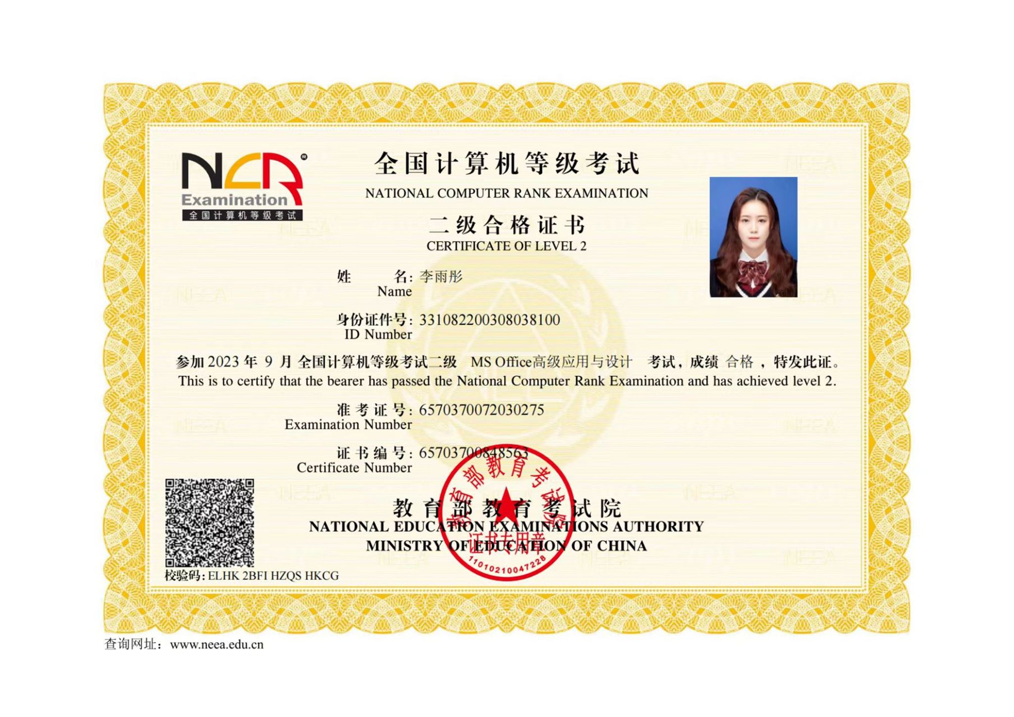 姓名:李雨彤