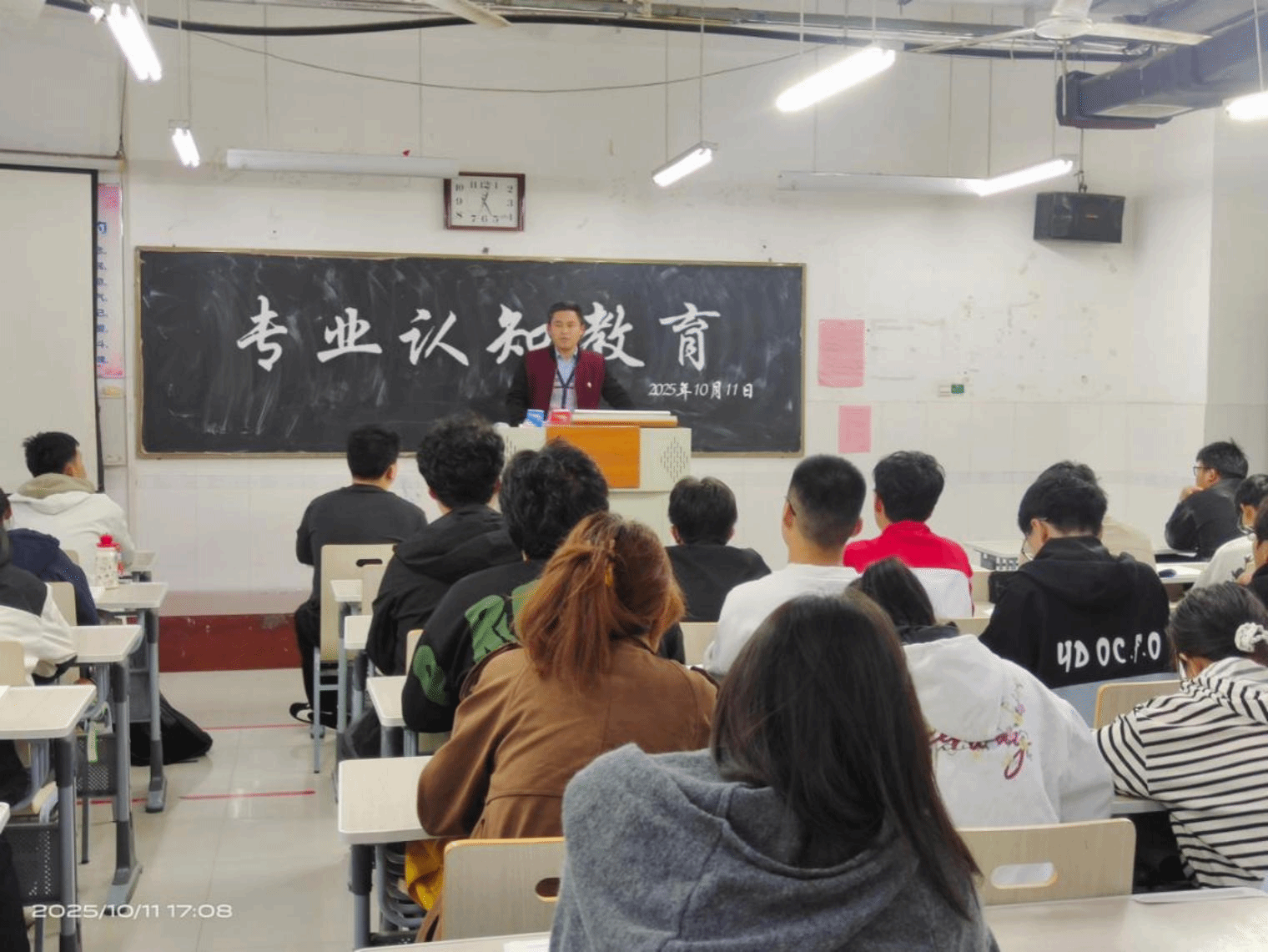 为助力新生深入了解学科脉络与发展前沿,科学规划学业生涯,奠定坚实成才基础,10月11日,物理与电子工程学院在综合实验楼W楼组织开展2025级新生专业认知教育活动。活动由物理与电子工程学院物理系主任李玉山、电气系主任孔令杰和电子信息系主任赵光辉担任主讲,为新生带来了一场内容丰富、指导性强的专业讲解。
