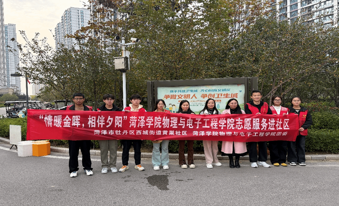 为传承孝亲敬老传统美德,传递社会温情,引导学生在实践中领悟责任担当、涵养人文情怀,10月24日,物理与电子工程学院于菏泽市牡丹区西城街道黄巢社区开展“金晖助老”志愿服务活动。物理与电子工程学院团委老师许莉,黄巢社区妇联主席李娜及社区工作者带领学生代表共同参与本次活动,用实际行动为社区老人送去关怀与温暖。