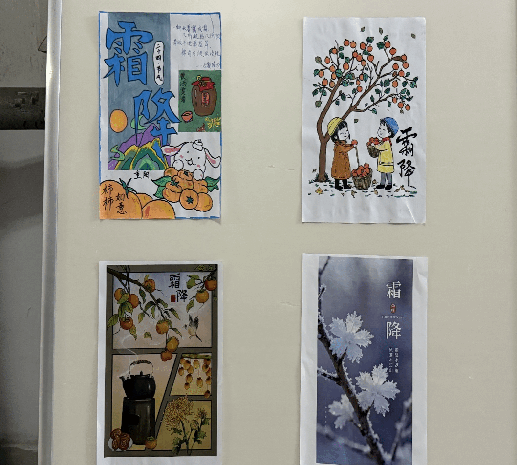 活动中,同学们围绕 “霜降赏月,情暖校园”的主题,用灵动的画笔勾勒霜降月夜的校园景致,用真切的言辞诉说对节气文化的感悟,展现出传统节气与校园生活交融的别样韵味。每一幅创作都承载着大家的巧思与温情——有人以水墨晕染出覆霜草木与皎洁明月,有人用文字记录月下师生相聚的温馨点滴,传递出对霜降节气的喜爱与对校园生活的热爱。这些作品将节气之美与校园温情相互融合,增强了活动的感染力与亲和力,在校园中营造了“品味传统节气、共抒校园暖意”的浓厚氛围。