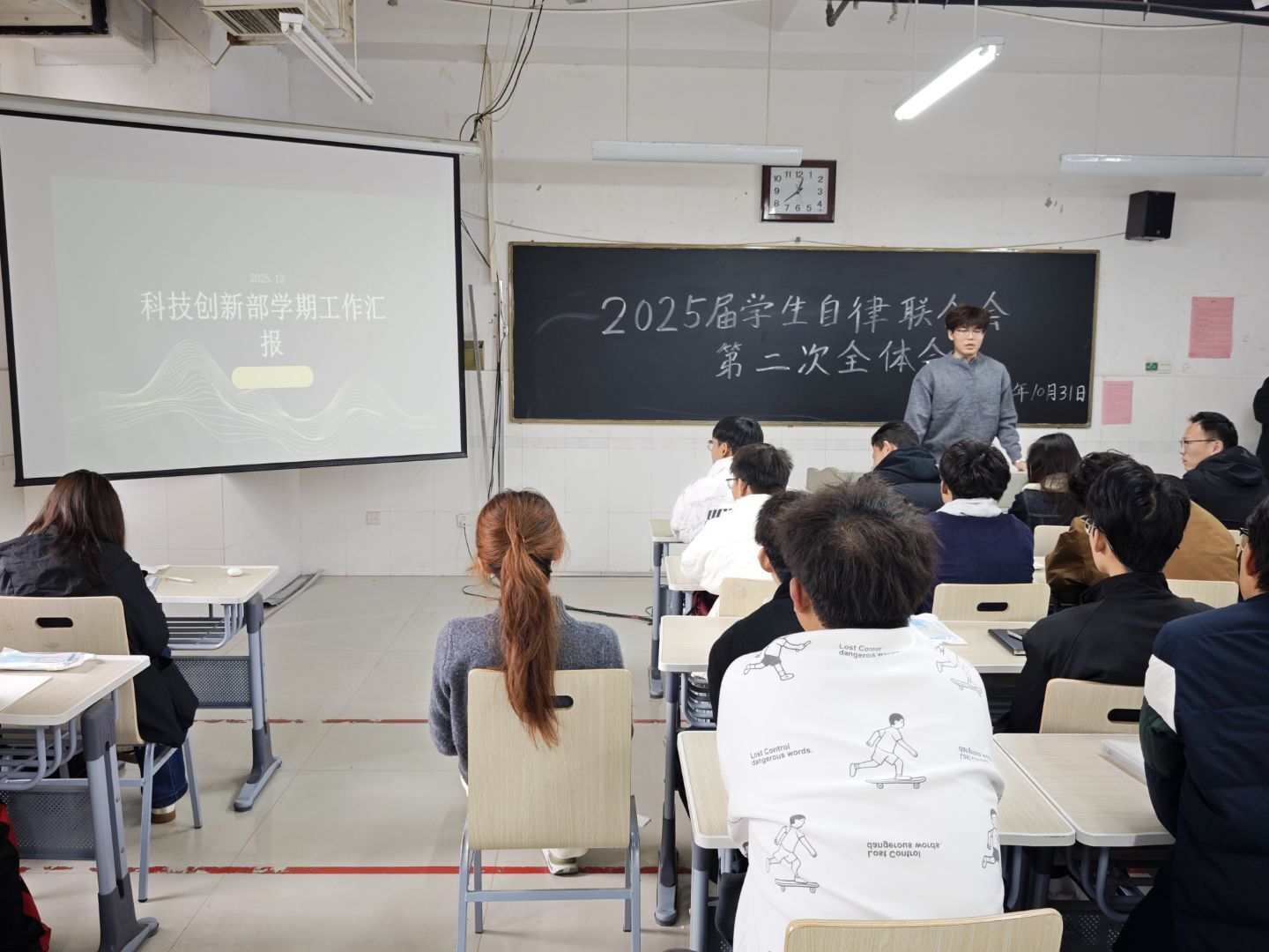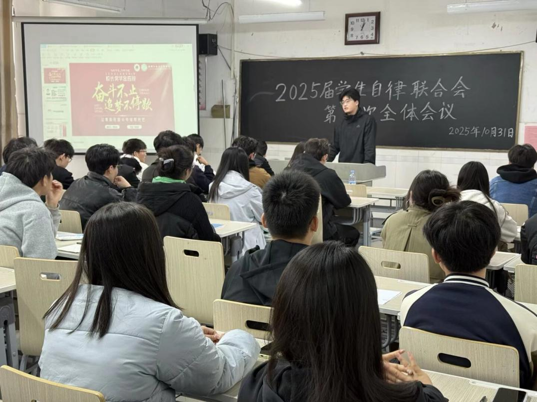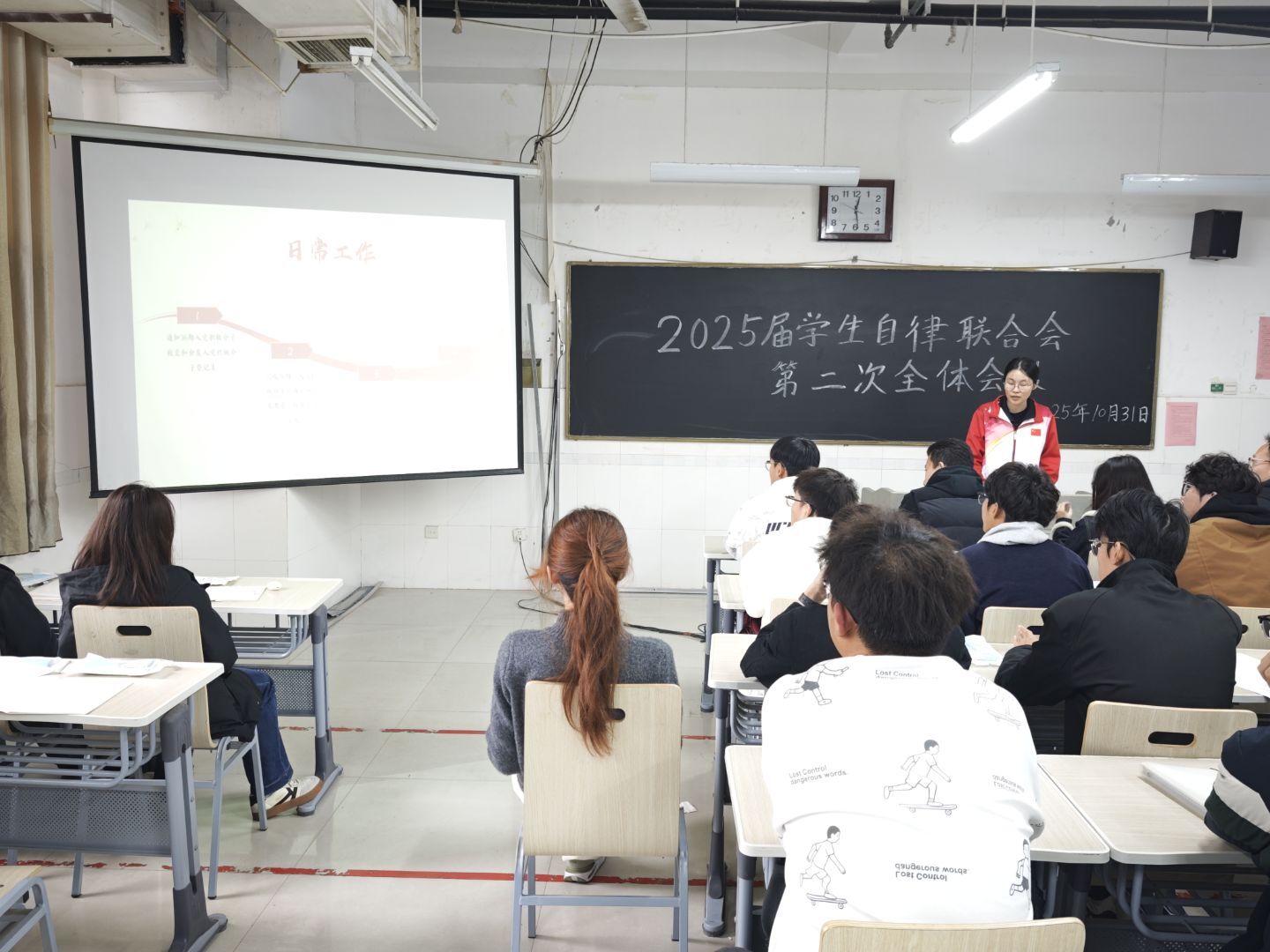 为总结近期工作、提升服务质量,10月31日,物理与电子工程学院在综合实验楼W502教室召开2025届学生自律联合会第二次全体会议。辅导员李晨出席此次会议,2025届学生自律联合会主席刘招锦主持会议,学生会全体成员参会。