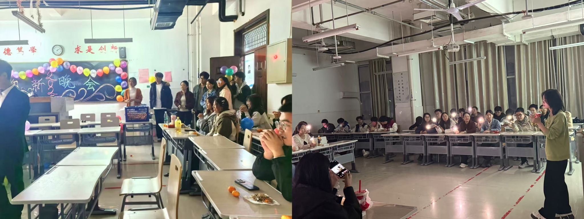 为迎接2025级新同学、增进彼此交流,11月7日,物理与电子工程学院组织各班在综合实验楼W楼教室举办了迎新晚会。辅导员和班主任也来到现场,与同学们共同参与活动。