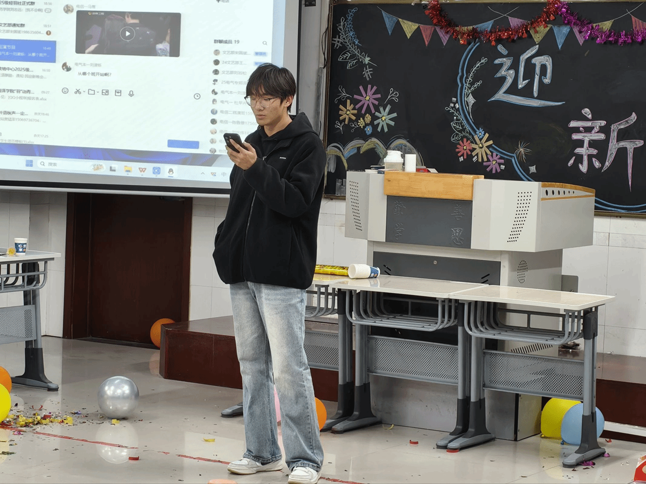 在同学们的精心布置下,教室里洋溢着温馨与期待,迎新晚会正式拉开帷幕。主持人热情开场,大家自信展示才艺,现场气氛热烈而温暖。灯光与闪光灯下,歌声与欢笑交织,青春的风采与班级的温情在此刻绽放。同学们纷纷表示这次晚会迅速拉近了彼此距离,更营造了团结友爱的班级氛围,让每个人都感受到归属与温暖,为大学生活留下了美好而难忘的开端。