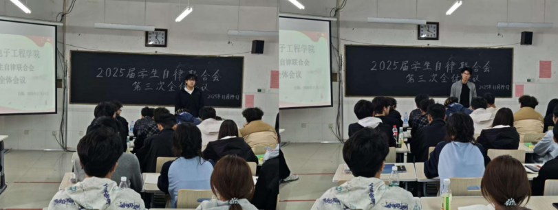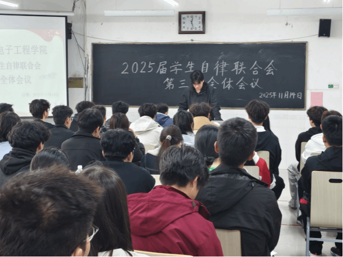 为总结近期各部门工作,提高工作效率,11月14日,物理与电子工程学院在综合实验楼W502教室召开2025届学生自律联合会第三次全体会议。此次会议由2025届学生自律联合会主席刘招锦主持,全体学生会成员参会。