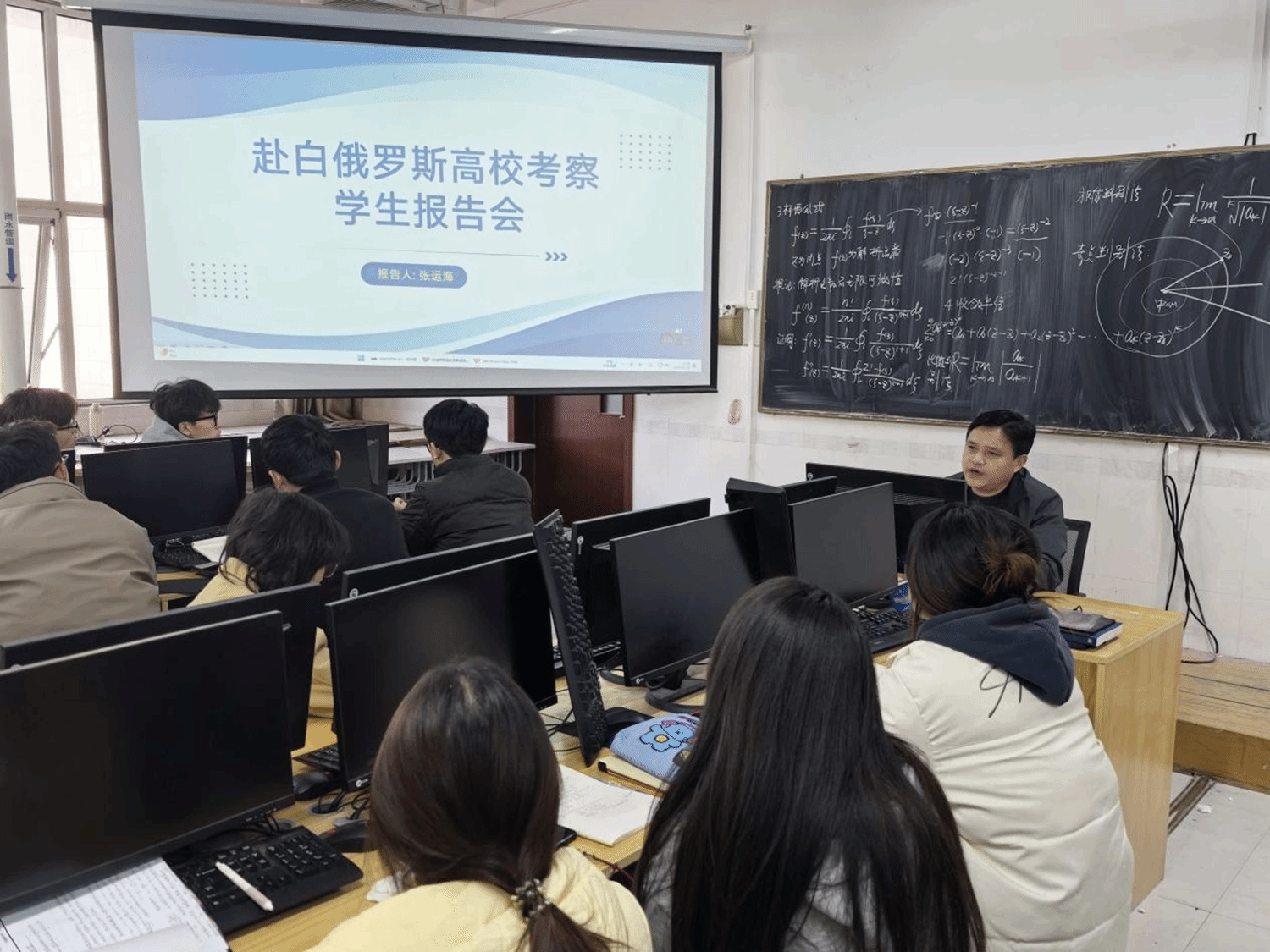 为搭建学生国际化发展平台,助力学子拓宽职业赛道,更好的服务学生全面成长,11月18日,物理与电子工程学院在综合实验楼W406教室召开赴白俄罗斯高校考察学生报告会。物理与电子工程学院副院长张运海担任主讲人。