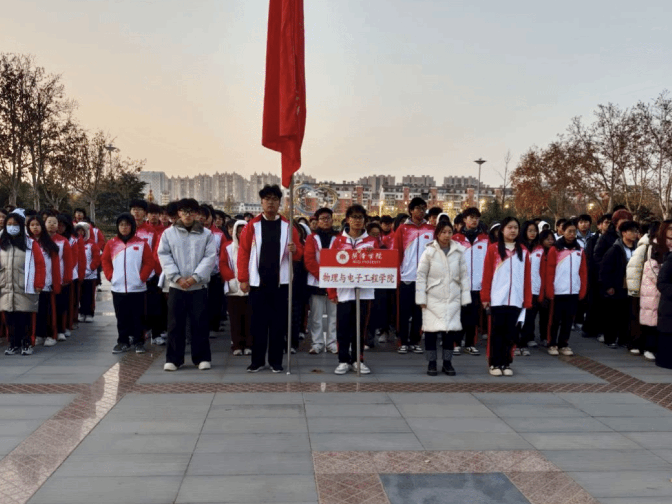 为强化国防观念、厚植爱国主义情怀,点燃青年学子的报国热忱,增强民族自豪感与荣誉感,12月1日,物理与电子工程学院在综合办公楼前广场参加学校升国旗仪式。物理与电子工程学院辅导员王金燕出席升旗仪式,2025级全体同学参加。