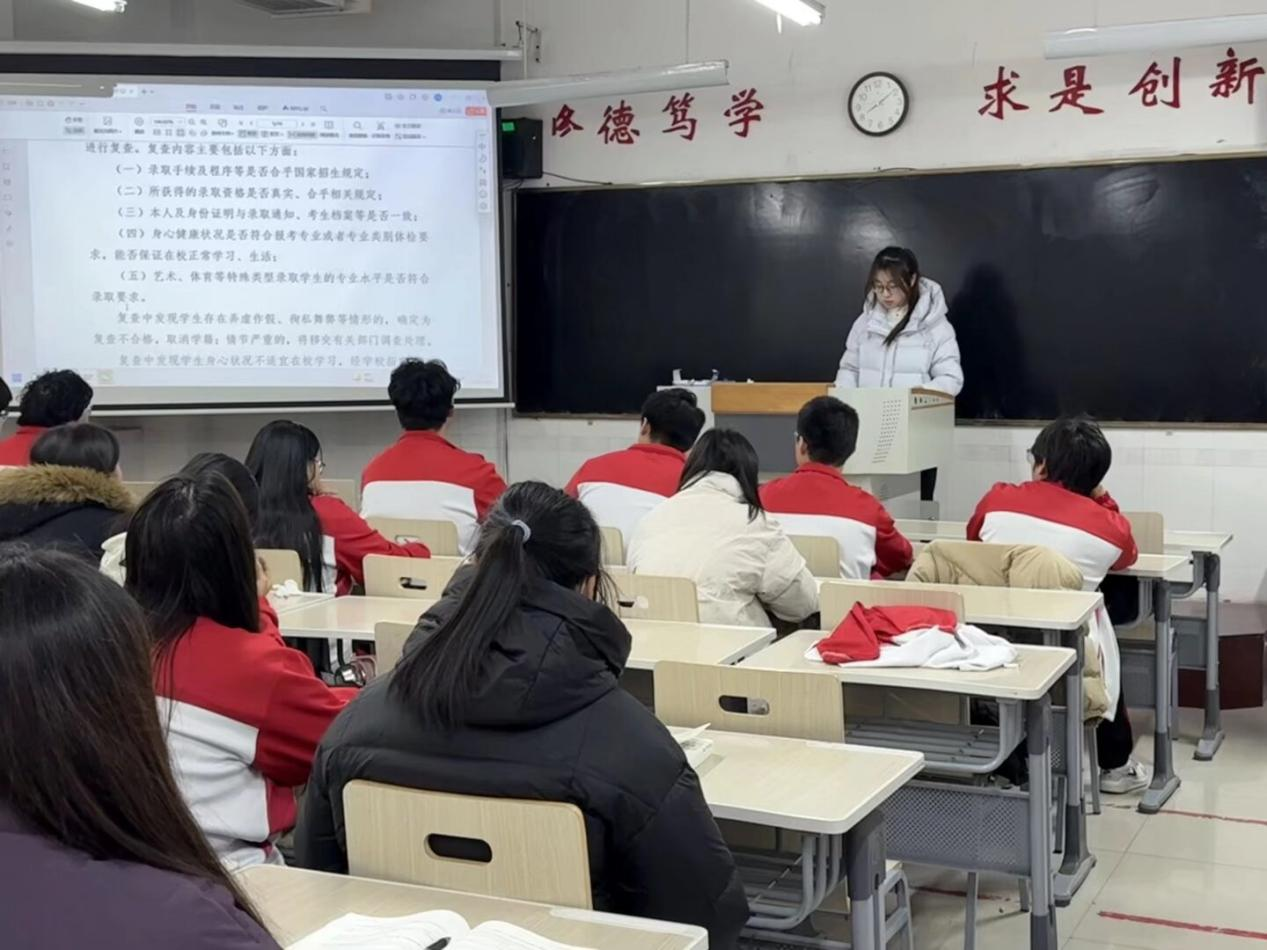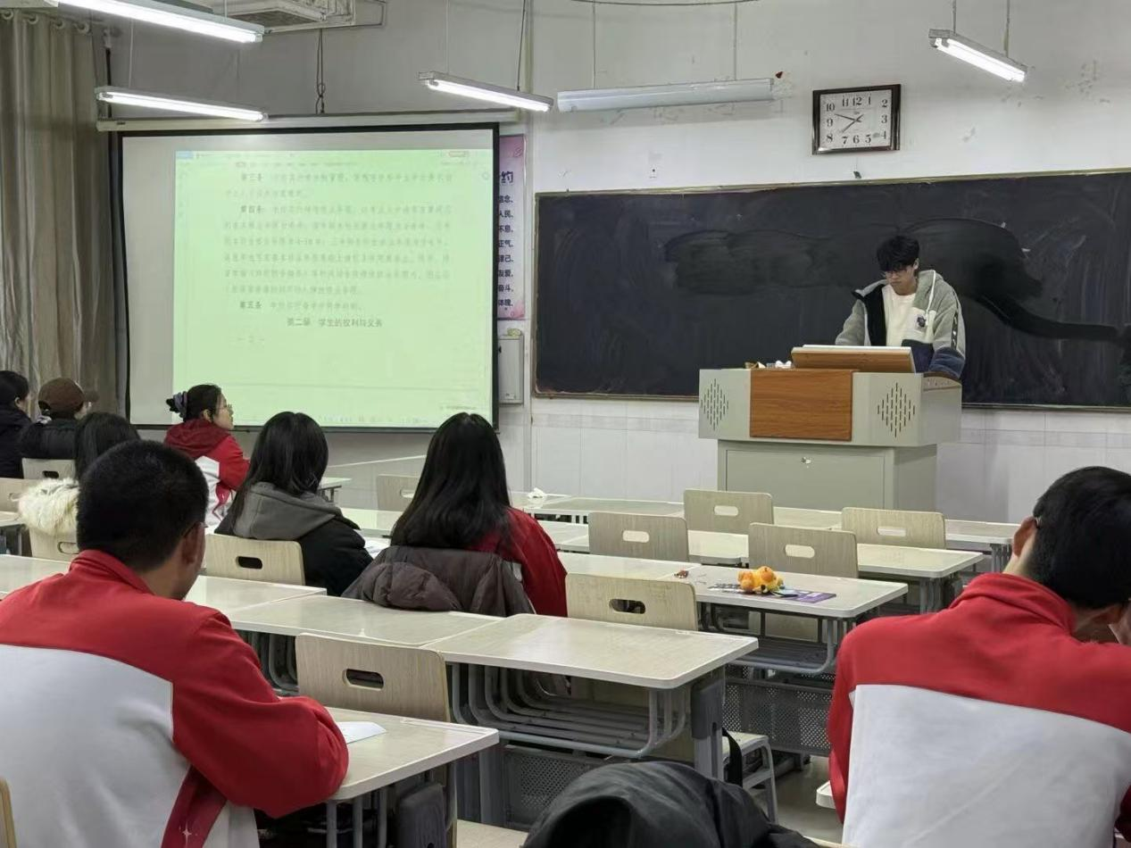 会上,负责人结合学校学籍管理细则,围绕学籍注册、课程修读、成绩考核等核心内容为同学们展开细致全面的讲解,推动学校学籍管理细则精准传达,从源头规避因操作不当影响学籍状态的问题。随后针对同学们普遍关注的缓考申请条件、补考重修流程、学分认定标准及学业预警机制等疑问为同学们做出一一解答,切实解决学生在学业管理方面的共性困惑。会后,班长对班会内容进行了系统梳理,并整合了《学籍管理规定重点条款手册》中的相关内容,以书面形式整理成要点摘要。这一做法既弥补了班会现场讲解的时间限制,也有助于同学们在课后进一步巩固对关键条款的记忆与理解。