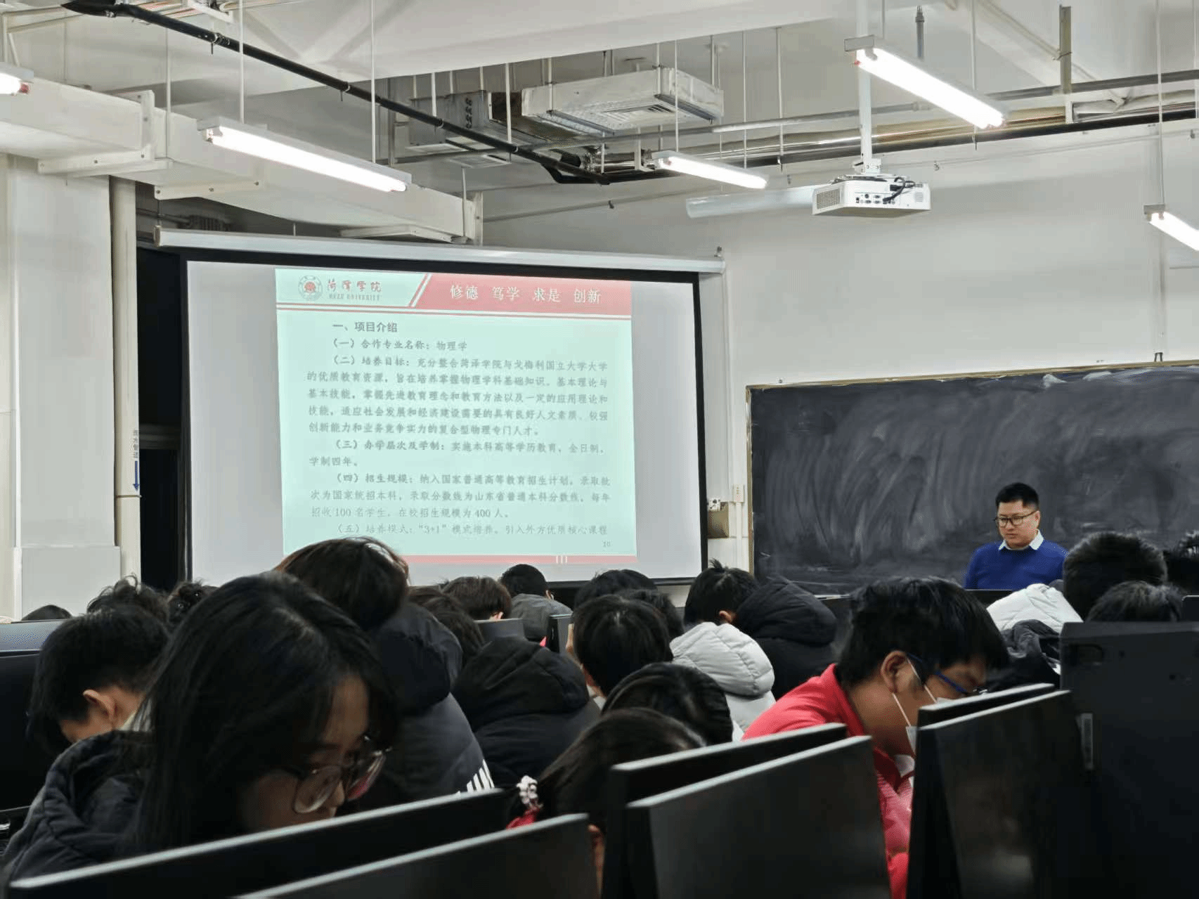 为帮助2025级物理学专业学生精准把握人才培养方案核心要义,明确学业目标与发展路径,12月11日,物理与电子工程学院在综合实验楼W406召开人才培养方案解读讨论会。物理学专业负责人李玉山老师走进2025级物理学一班和二班,与同学们面对面开展交流讨论活动。