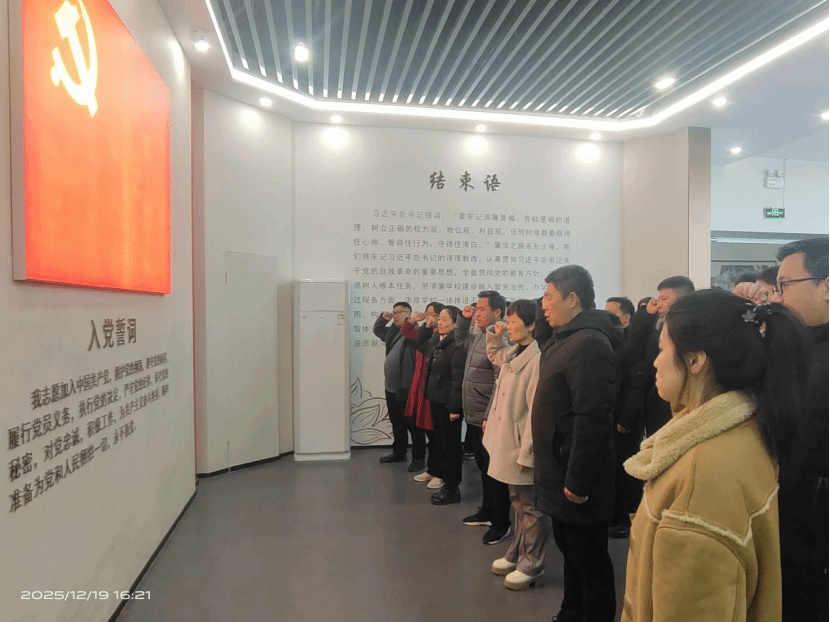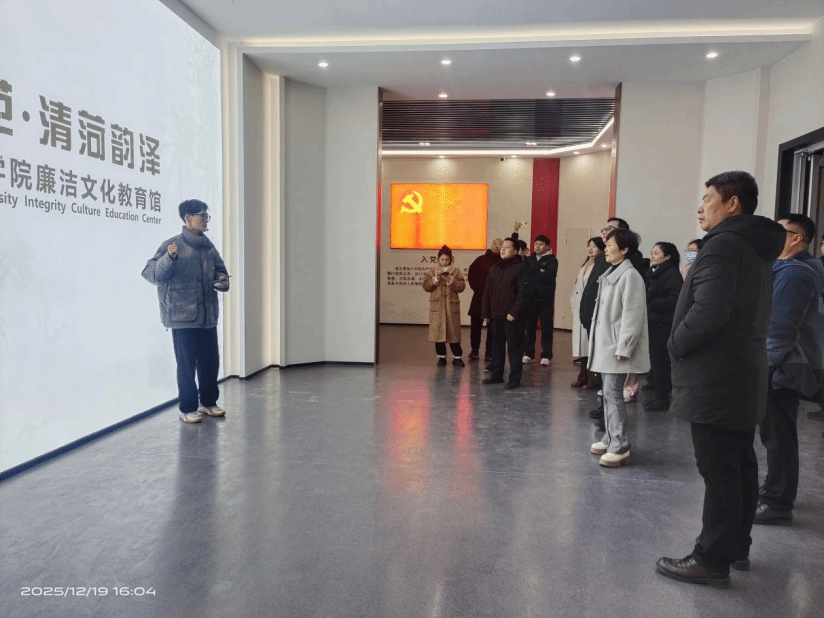 活动现场,专业讲解员结合廉洁馆内的图文展板、实物陈列与影像资料,为教工党员系统讲解了廉政发展历程、古今廉洁典范事迹以及违纪违法典型案例。教工党员在各展区自主参观并分享体会,结合教学、科研与管理实际,进一步理解廉洁文化内涵,厘清岗位风险与行为边界。活动尾声,全体教工党员重温入党誓词,既是对廉洁自律的郑重承诺,更是对坚守教育初心、恪守职业操守的再次砥砺。