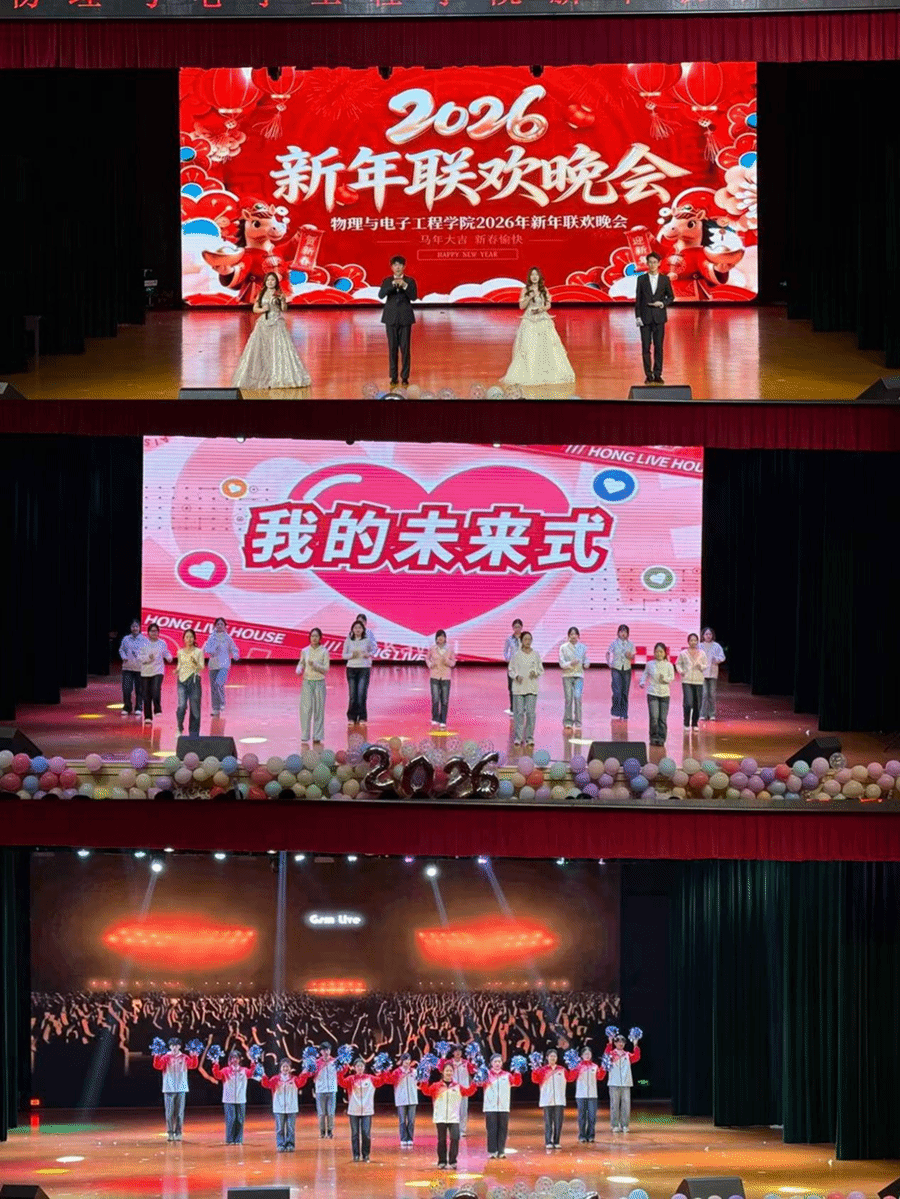 本次新年联欢晚会顺利举办,不仅是物理与电子工程学院师生辞旧迎新的温暖聚会,也展现了学院团结进取、奋发向上的精神风貌。新年伊始,万象更新,愿全体师生以昂扬斗志、坚实的步伐,在各自的赛道上继续奔跑,用实干谱写青春,以奋斗开创未来。