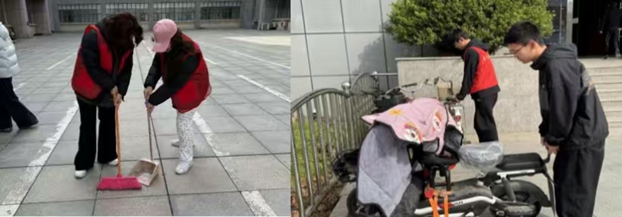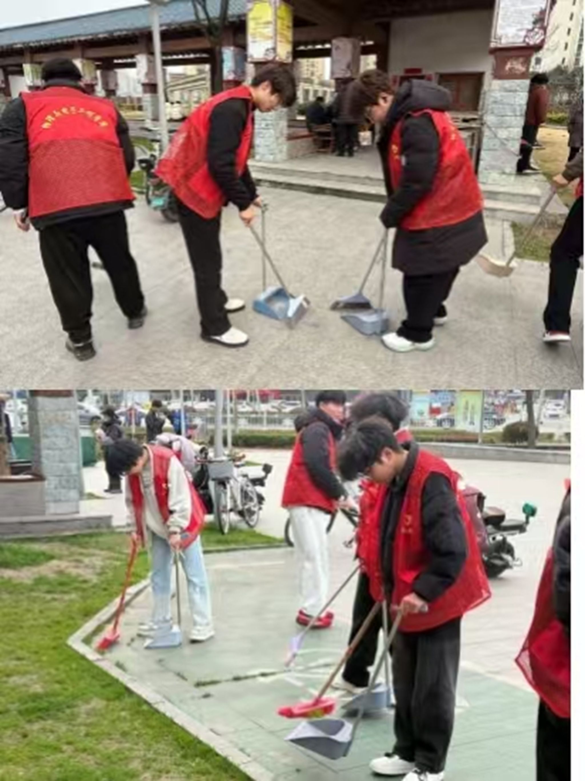 志愿者以实干行动践行志愿服务理念,扮靓校园环境,让雷锋精神在青春实践中熠熠生辉。他们手持扫帚、簸箕,细致清扫校园地面,让校园每一寸角落都洁净如新;同时,规整乱停乱放的共享单车,引导师生文明用车,让原本杂乱的停车区域变得井然有序。志愿者们的身影穿梭在校园各个角落,他们不畏辛劳、实干笃行,用双手擦亮了校园文明底色。