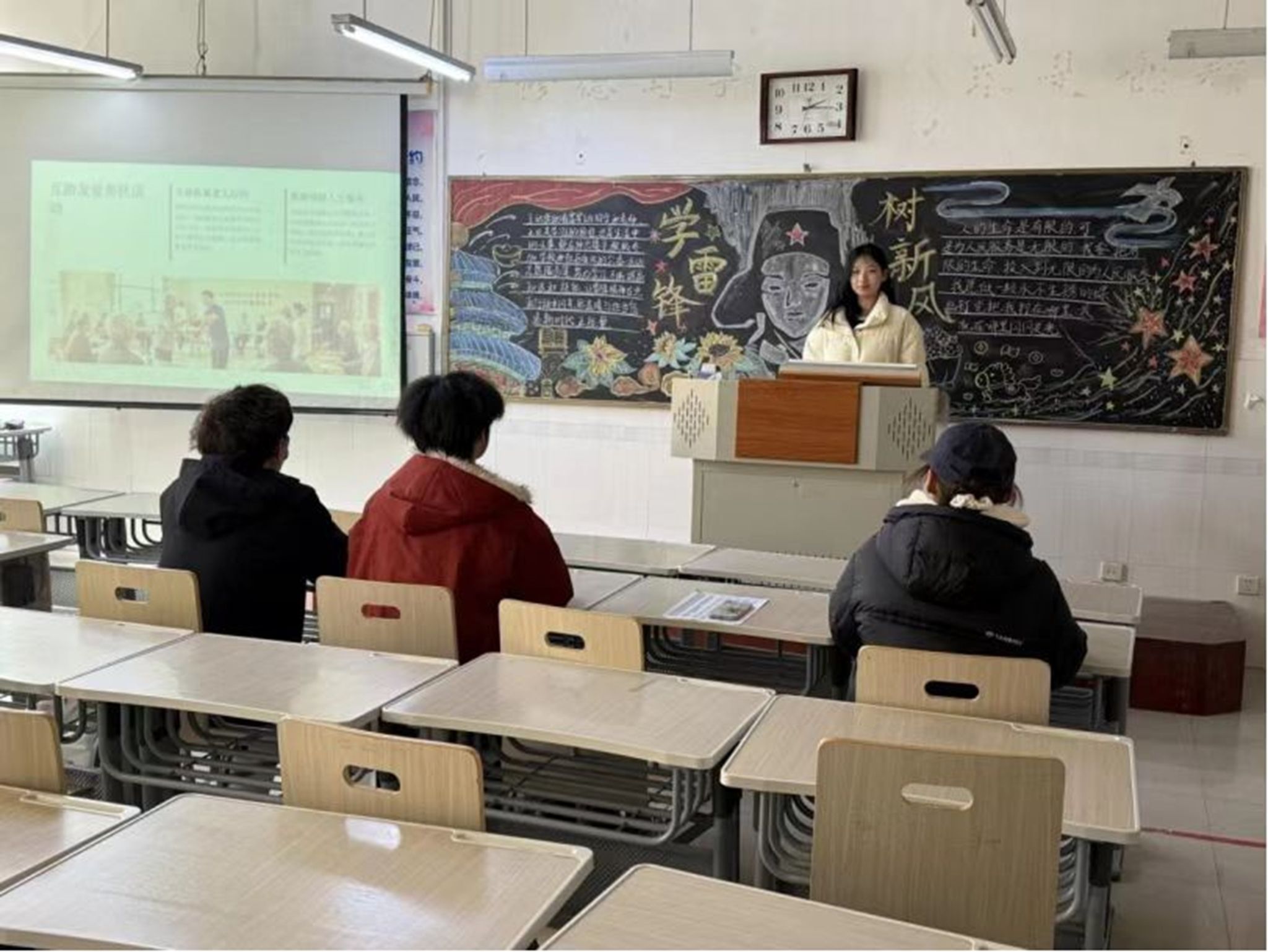 学院举办主题宣讲会,邀请优秀志愿者代表结合亲身经历,用鲜活的志愿服务案例、感人的奉献故事,解读雷锋精神在当代的内涵与价值。现场互动热烈,同学们在聆听与交流中深化对雷锋精神的理解,纷纷表示要将“螺丝钉精神”融入学习与生活,在志愿服务中勇夺桂“锋”,让雷锋精神在新时代焕发新活力。