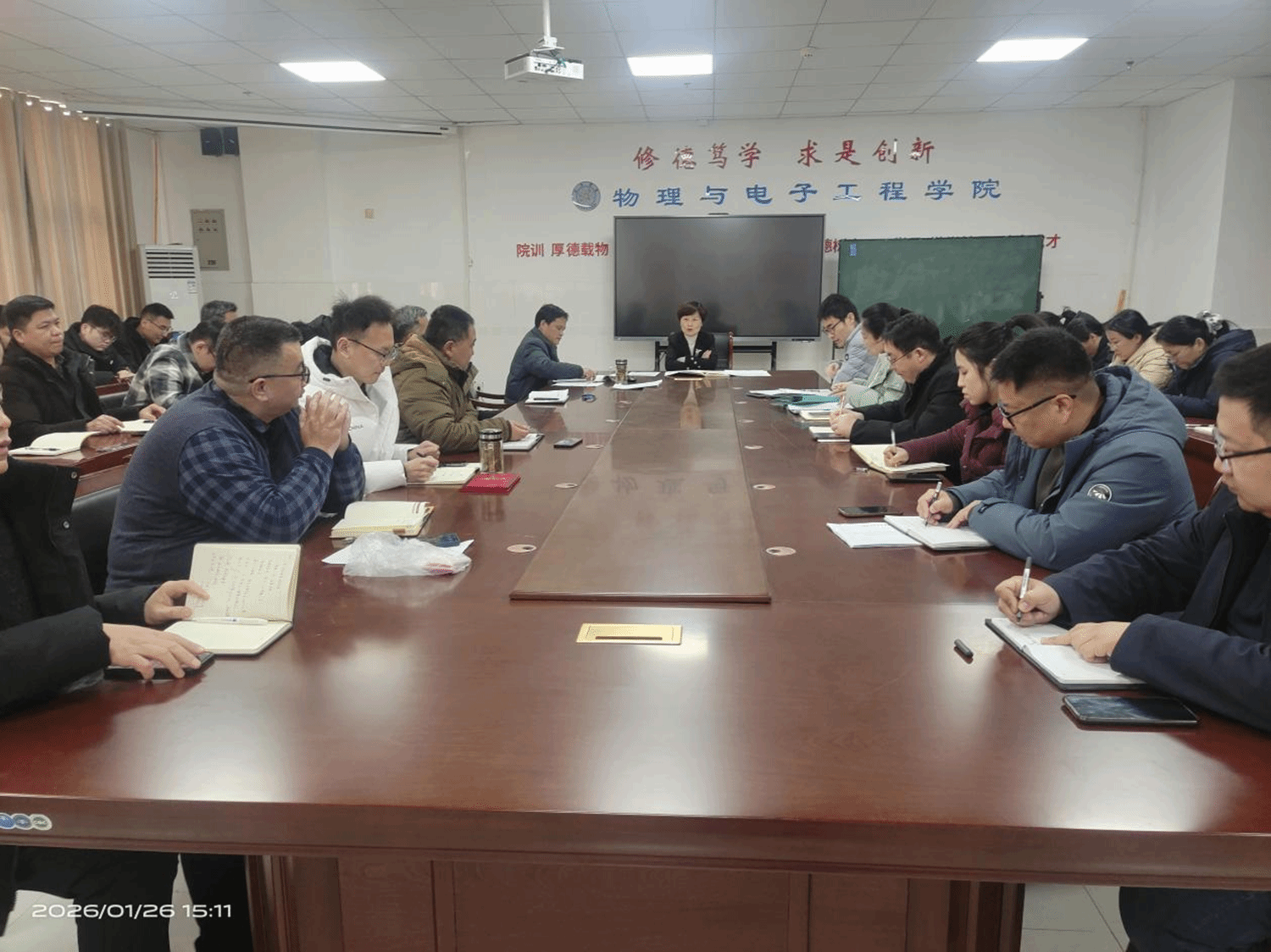 此次会议顺利展开,不仅是对2025年工作的全面复盘,也是对2026年工作的谋篇布局。物理与电子工程学院将以此次会议为契机,总结经验、补齐短板、凝聚共识,以更饱满的热情、更务实的作风,推动学院发展迈上新台阶。